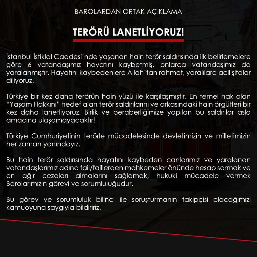 Barolardan Ortak Açıklama: Terörü Lanetliyoruz! | İstanbul Barosu