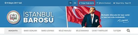 Elektronik olarak verilen belgenin ilgili kurum/kuruluş tarafından doğrulanması amacıyla İstanbul Barosu Elektronik Belge Sistemi üzerinden oluşturulan faaliyet belgesi üzerinde bulunan onay kodu ile https://belgedogrulama.istanbulbarosu.org.tr adresinden veya sitemizin üst bölümünde bulunan "belge doğrulama" seçeneğinden doğrulama yapılabilecektir. Doğrulama başarılı olduğunda belge PDF formatında açılacaktır.