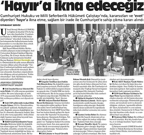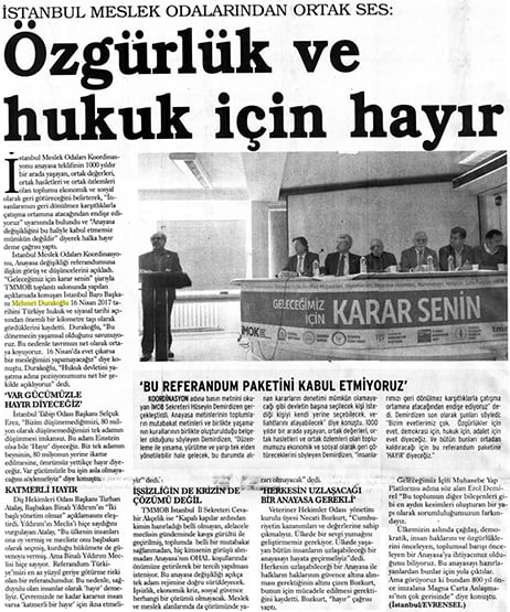 İstanbul Barosu Başkanı Av. Mehmet Durakoğlu, bu çerçevede anayasa değişikliğiyle neler amaçlandığını halka anlatmak amacıyla düzenlenen çeşitli toplantılara katılarak konuşmalar yaptı.