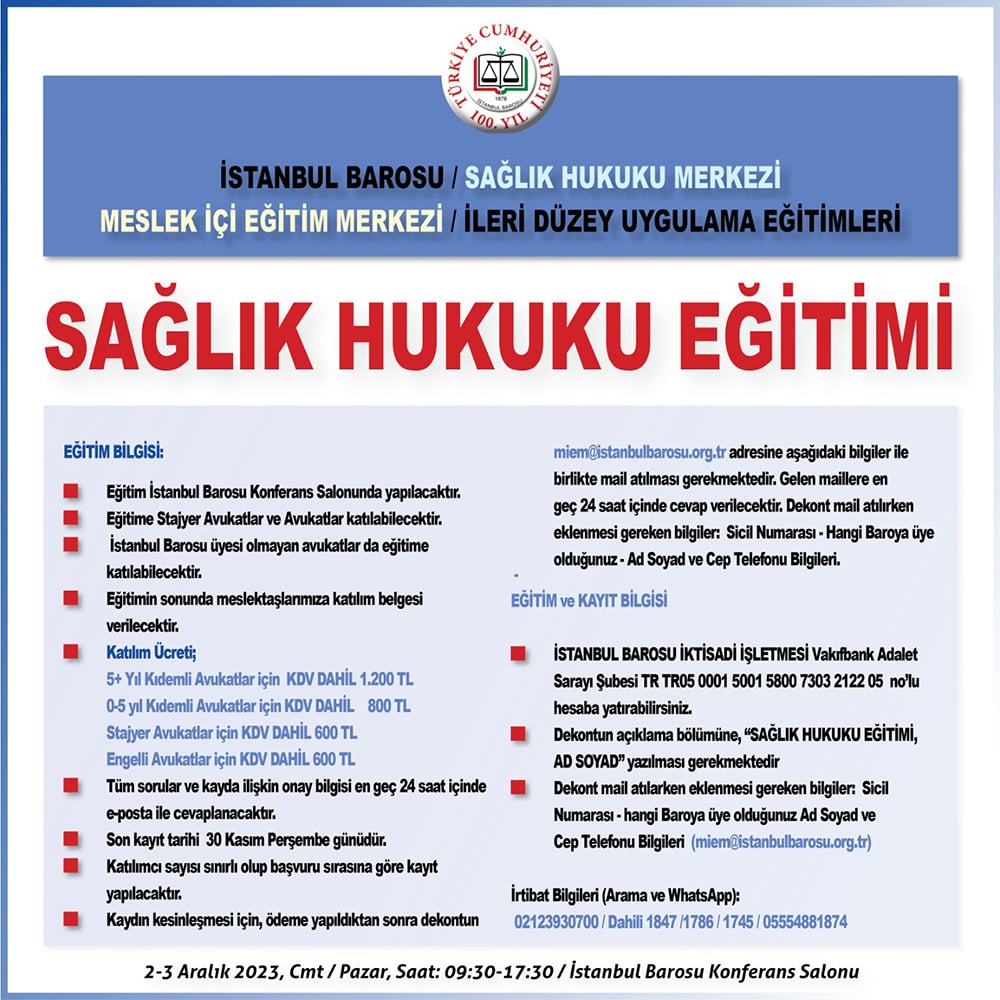 - Eğitim İstanbul Barosu Konferans Salonunda yapılacaktır.
