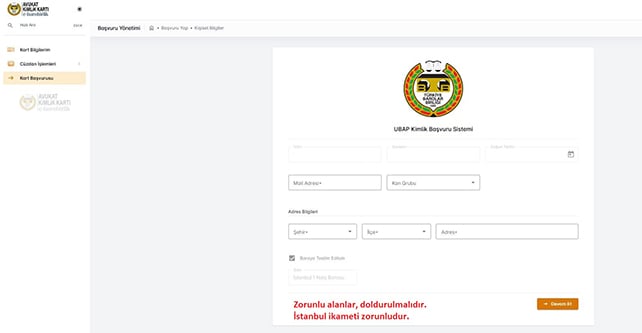 Not: Başvuru sırasında tüm zorunlu alanlar doldurulmalıdır. Eksik bilgi girilmesi durumunda başvuru tamamlanamayacaktır.