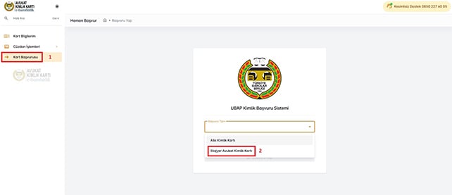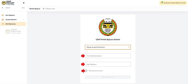 Başvuru tipi olarak “Stajyer Avukat Kimlik Kartı” seçilmelidir.