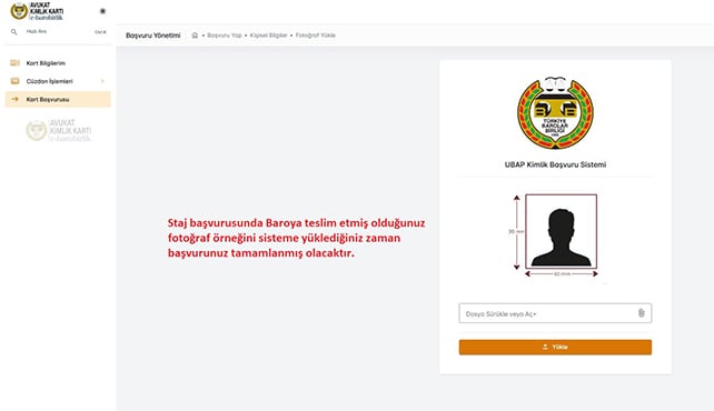 Baroya teslim ettiğiniz fotoğrafın aynısını sisteme yüklemeniz gerekmektedir.