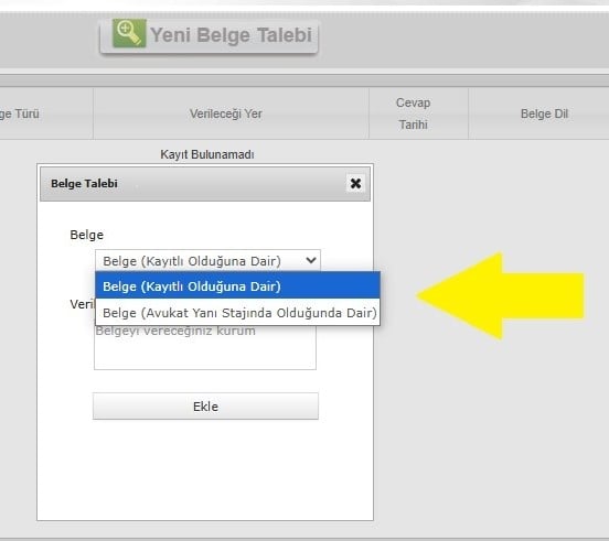2-Ana menüden “Belge Talebi” sekmesine tıklayınız.
